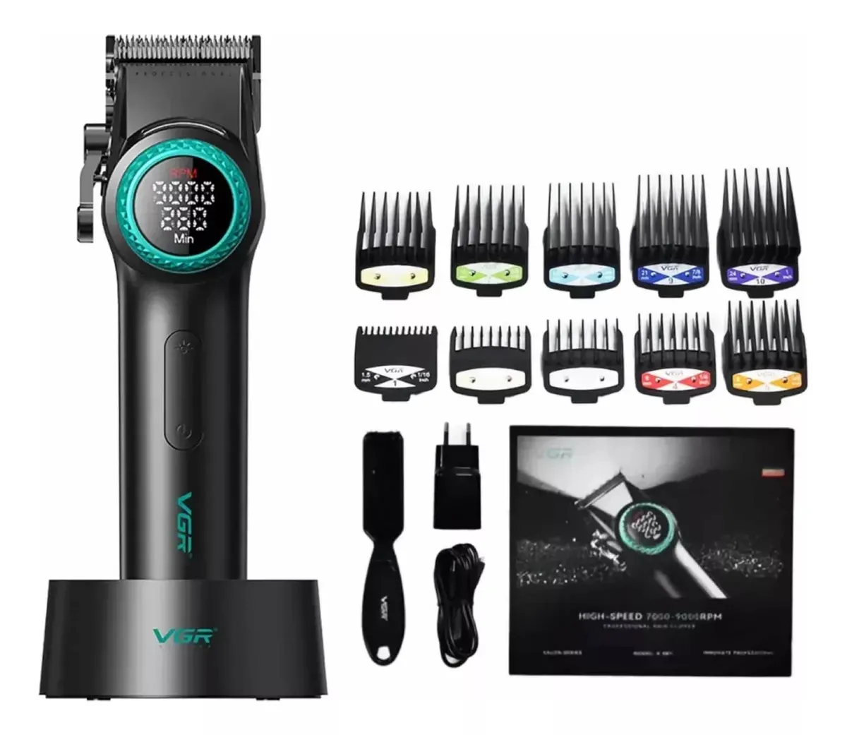 Domina cada corte con la potencia extrema de la VGR V-001. Esta máquina clipper inalámbrica ha revolucionado la barbería profesional gracias a su motor vectorial de alto rendimiento que alcanza las 9000 RPM, permitiendo cortes precisos en una sola pasada sin tirones, incluso en cabellos muy densos.